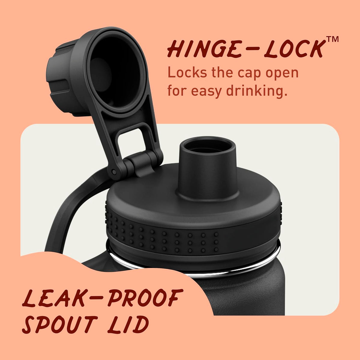Aquapureline Actives Stainless Steel Insulated Water Bottle with Spout Lid – 24oz Onyx, Leak-Proof and Dishwasher Safe