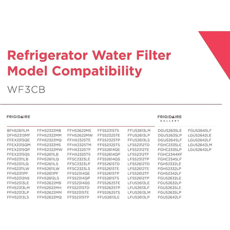 Enjoy fresh, clean water with the Frigidaire WF3CB PureSource 3 Refrigerator Water Filter. This filter effectively removes impurities like chlorine, lead, and mercury, delivering pure water and ice every time.